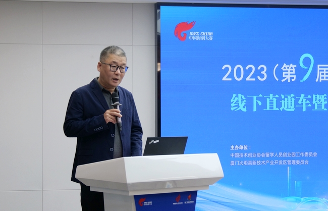 5月22日,2023(第九屆)中國海歸創(chuàng)業(yè)大賽線下直通車暨“海創(chuàng)中國”導(dǎo)師行(廈門站)在廈門留學(xué)人員創(chuàng)業(yè)園圓滿舉辦。活動由中國技術(shù)創(chuàng)業(yè)協(xié)會留學(xué)人員創(chuàng)業(yè)園工作委員會、廈門火炬高技術(shù)產(chǎn)業(yè)開發(fā)區(qū)管理委員會共同主辦,廈門高新技術(shù)創(chuàng)業(yè)中心有限公司(廈門留學(xué)人員創(chuàng)業(yè)園)、廈門高新科創(chuàng)天使創(chuàng)業(yè)投資有限公司、火炬高新區(qū)海內(nèi)外高層次人才創(chuàng)業(yè)服務(wù)驛站承辦。中國技術(shù)創(chuàng)業(yè)協(xié)會副理事長、留學(xué)人員創(chuàng)業(yè)園工作委員會專職副會長兼秘書長郎靖,留創(chuàng)園工委會副秘書長胡頌華,廈門高新技術(shù)創(chuàng)業(yè)中心有限公司總經(jīng)理鄭鞏固等相關(guān)單位負責(zé)人及5位評委導(dǎo)師出席活動。
